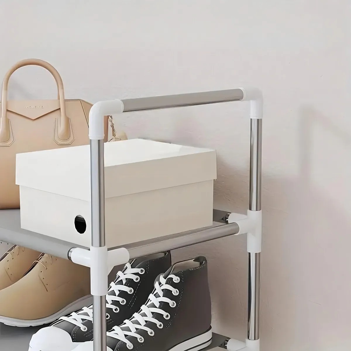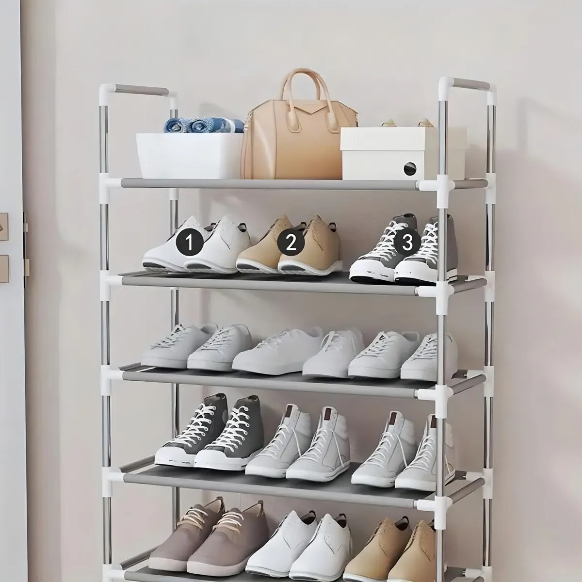Cuenta con 9 niveles de almacenamiento, con capacidad para hasta 27 pares de zapatos.