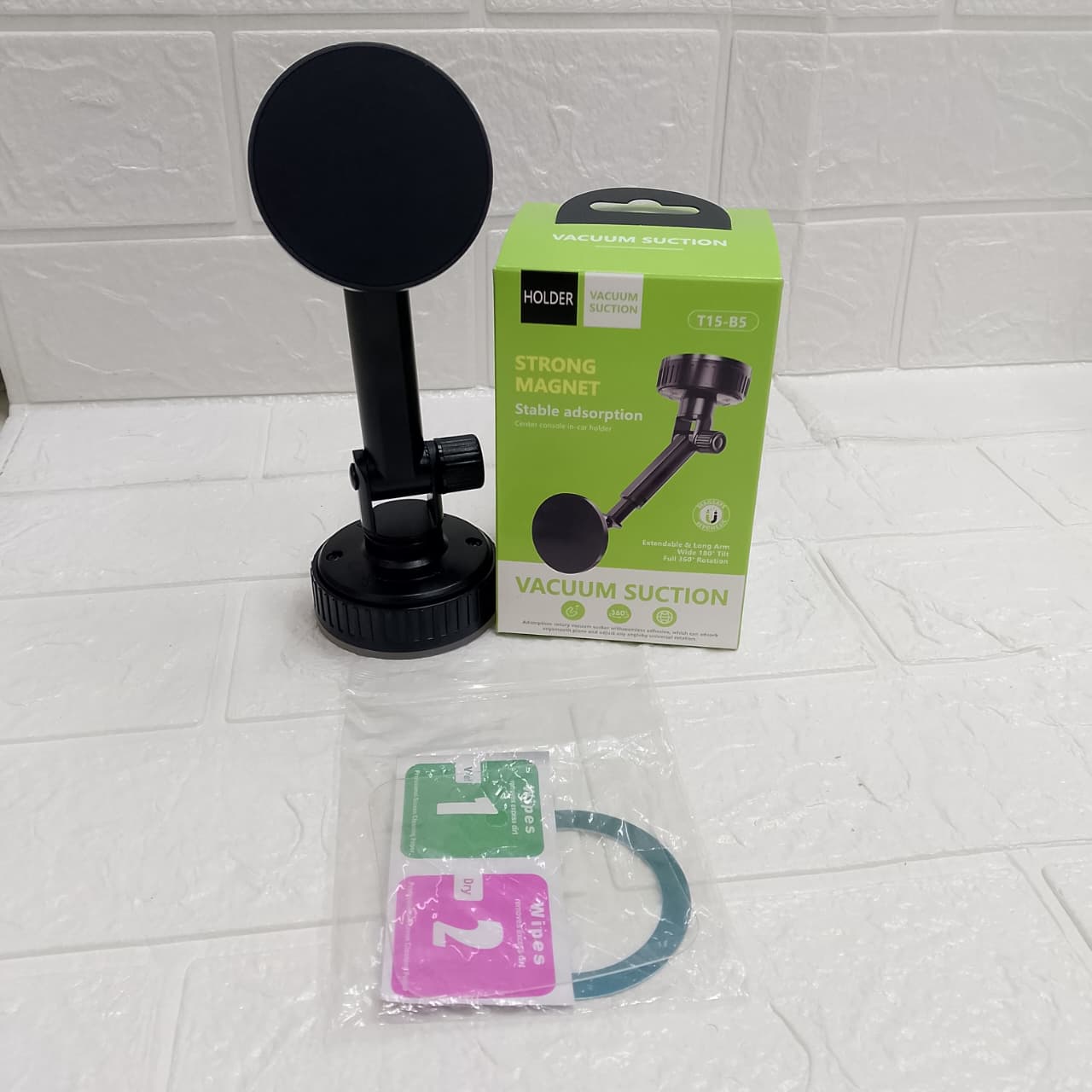 • Viene con una placa metálica / adhesivo para pegar al teléfono o funda, que permite la magnetización sin mayores complicaciones.